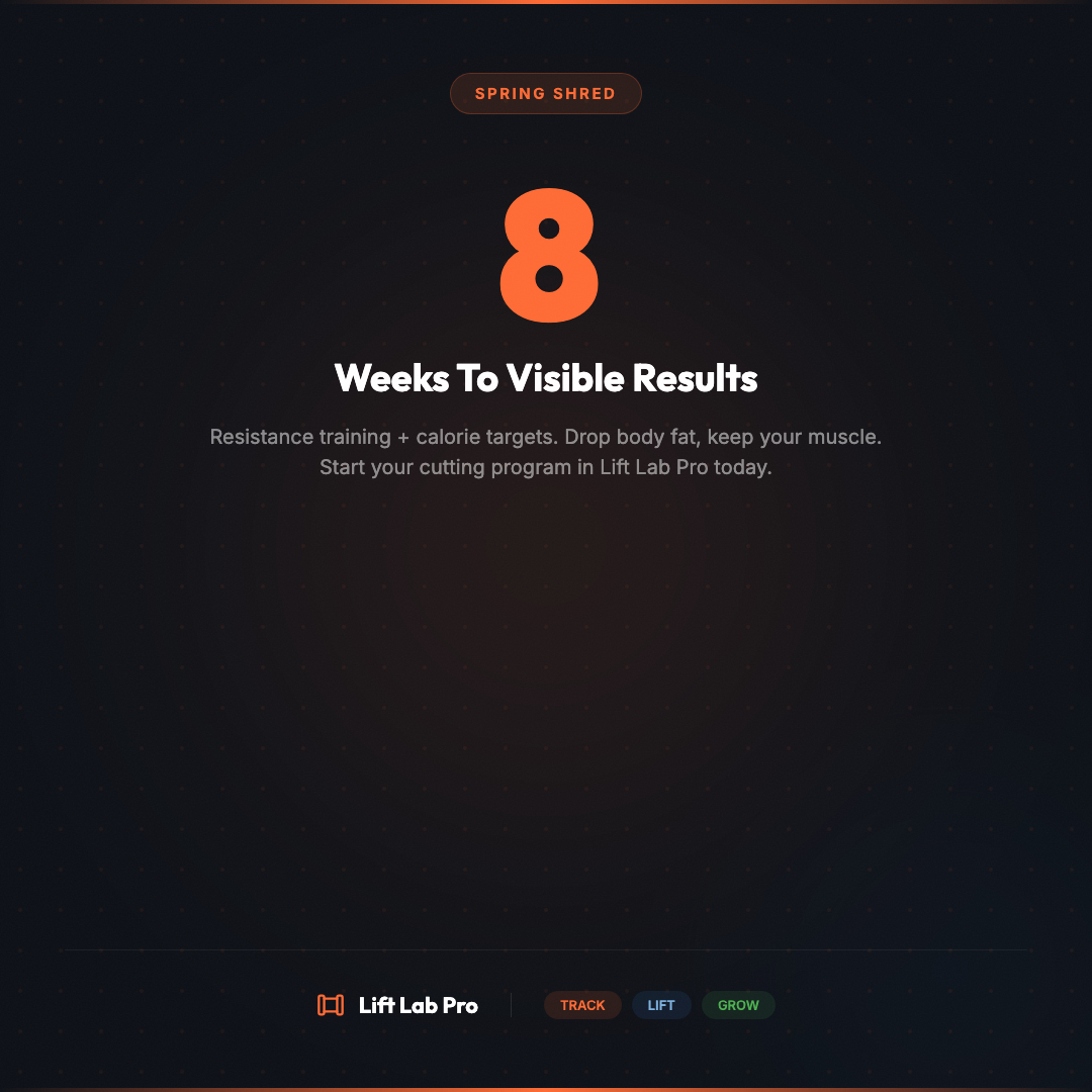 Eight weeks is all you need to make a visible difference. Lift Lab Pro's fat loss programs combine resistance training with calorie targets to help you drop body fat while holding onto muscle. Start your program today. #SpringShred #FatLoss #LiftLabPro #CuttingSeason #SummerBody #FitnessGoals
