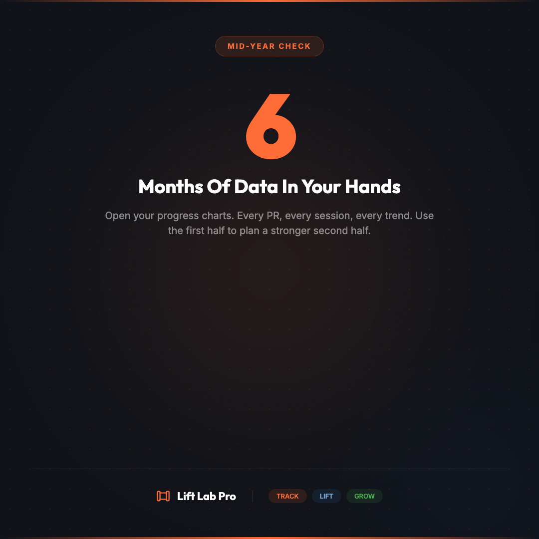 Six months down. If you logged your workouts in January, open Lift Lab Pro right now and check your progress charts. The gains are real — you just need to see them. #MidYearCheck #ProgressTracking #LiftLabPro #FitnessGoals #HalfwayThere #TrackYourGains