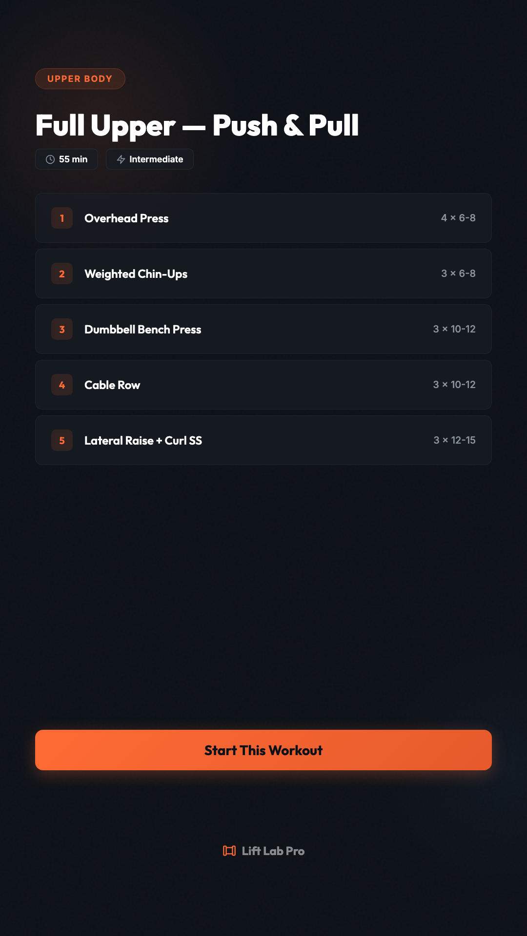 Full upper body. Compound pressing, rows, and isolation work. 55 minutes. #LiftLabPro #UpperBody #WorkoutOfTheDay